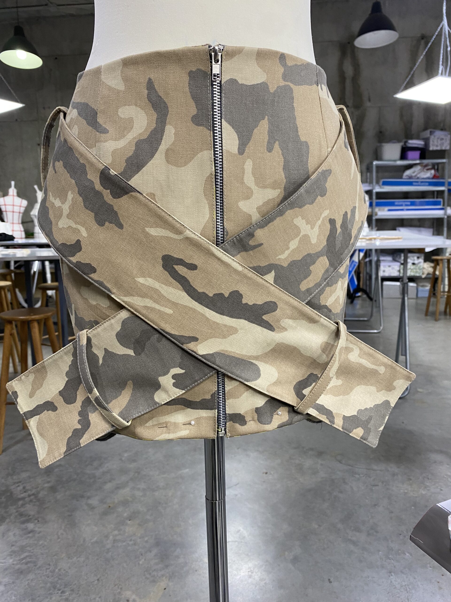 Esta falda fusiona la estética militar con un espíritu rebelde y urbano. Su diseño de camuflaje resalta la fuerza y versatilidad, mientras que los detalles de correas cruzadas con ojales metálicos añaden un aire punk y transgresor. Confeccionada con materiales resistentes como el denim ligero y cómodos, esta prenda está hecha para quienes buscan expresar actitud sin perder estilo.